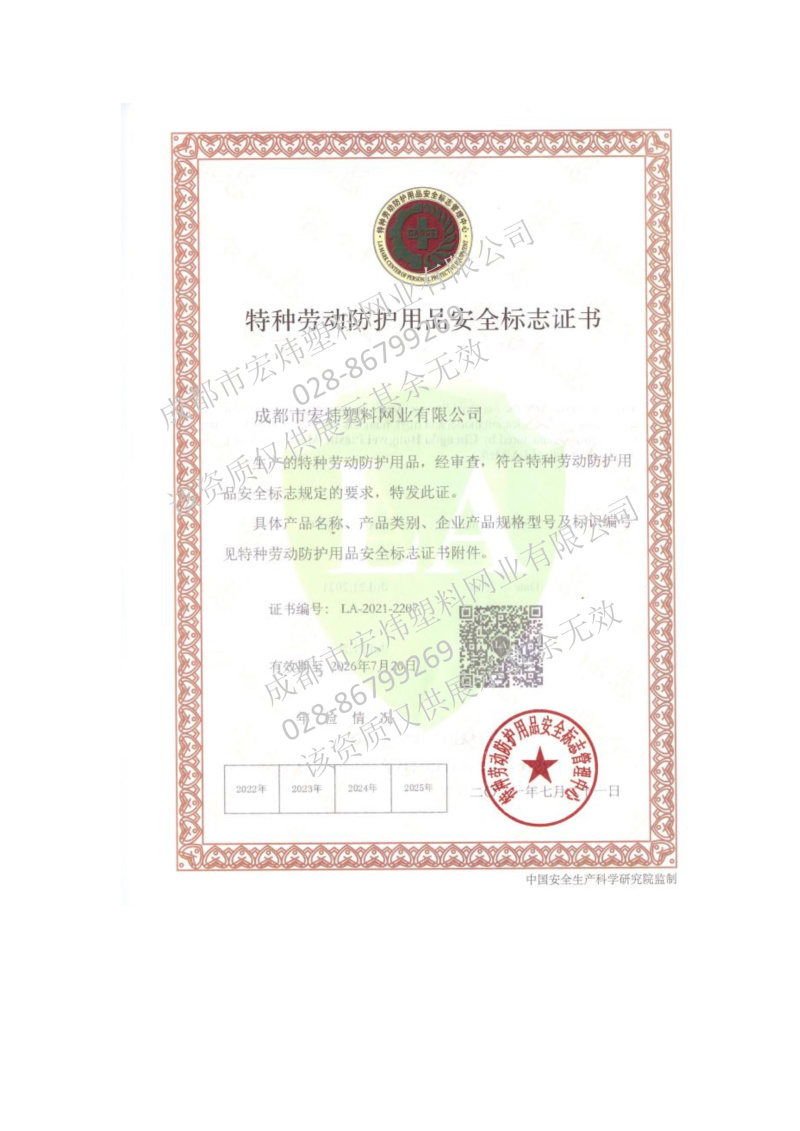 特種勞動防護(hù)用品安全標(biāo)志證書